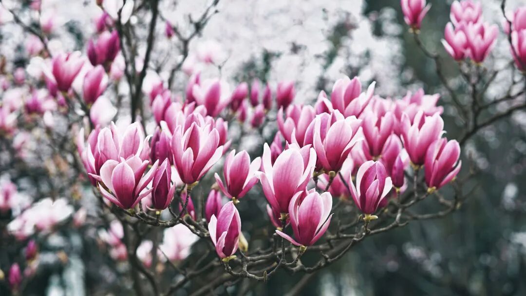 玉兰白可温润如脂,紫若烟霞成锦