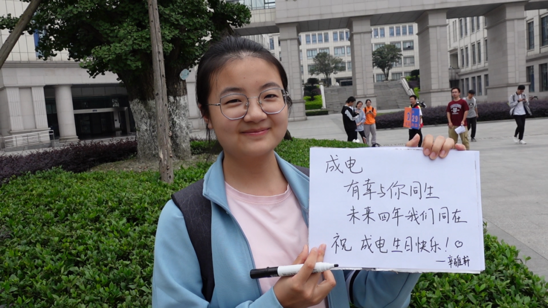 来到电子科大是意料之中,但和母校同天生日却是意料之外,希望未来四年电子科大也能给我带来很多意料之中的期许和意料之外的惊喜。