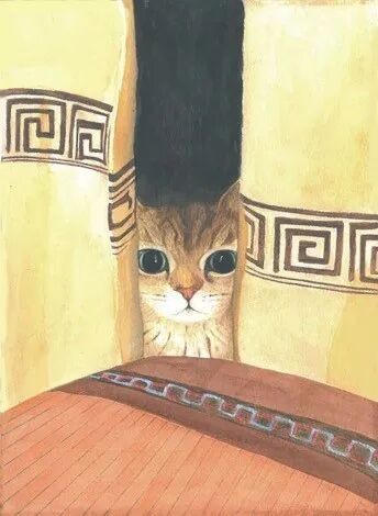 作品说明:此作品创作主题灵感来源于我家养的一只猫——豆豆,造型上直接采用了它的形象;色彩上用了 比较明亮活泼的颜色,想营造出一种轻松惬意的氛围。这几幅画分别是定格了一个他趴在鳄鱼玩具上打哈欠、仰卧、躲在窗帘后偷窥和从猫包中逃脱的 场景。猫嗜睡、喜暗、警惕、身体柔软的特性使豆豆做出这些可爱又让人觉得有点好笑的动作,我选择的这几个场景都是我认为比较有趣的,能从中窥探到猫这种生物的喜好与习性。