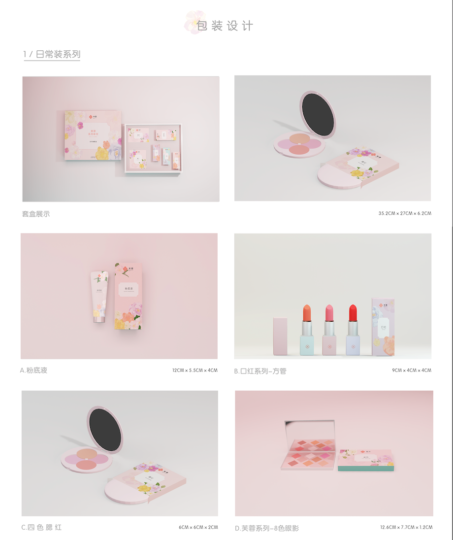 作品说明:娃哈哈苏打水商业插画,采用明亮鲜艳的主题色调,表现活泼、年轻的品牌调性。从大餐、工作、运动三大饮用场景入手,强调娃哈哈苏打水解油去腻、舒缓压力、补充水分的功能。通过卡通人物进行场景展现,对应“年轻”的品牌受众。3.《作品名称:芙蓉日化——彩妆设计》