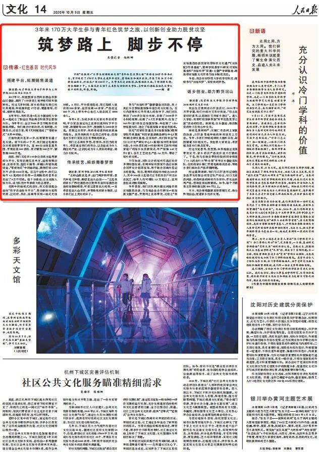 此外,创业刚刚起步的刘沈厅还向“栋梁工程基地班”捐赠10万元,设立“启梦”奖学金,鼓励学弟学妹们追求梦想、实现梦想。在硕士毕业前夕,刘沈厅了解到部分学习进步较大的困难同学无法获得奖学金时,他就捐出刚获得的2万元国家奖学金,鼓励他们。“我有了一定的经济能力,就要回报母校的培养,让更多有才能的青年建设好我们的国家,”刘沈厅说,“公益也是事业,成就的是更大的梦想。”