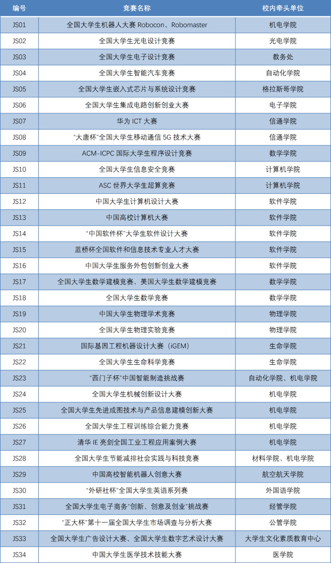 新工科教育课外创新实践成果展参展学科竞赛名单