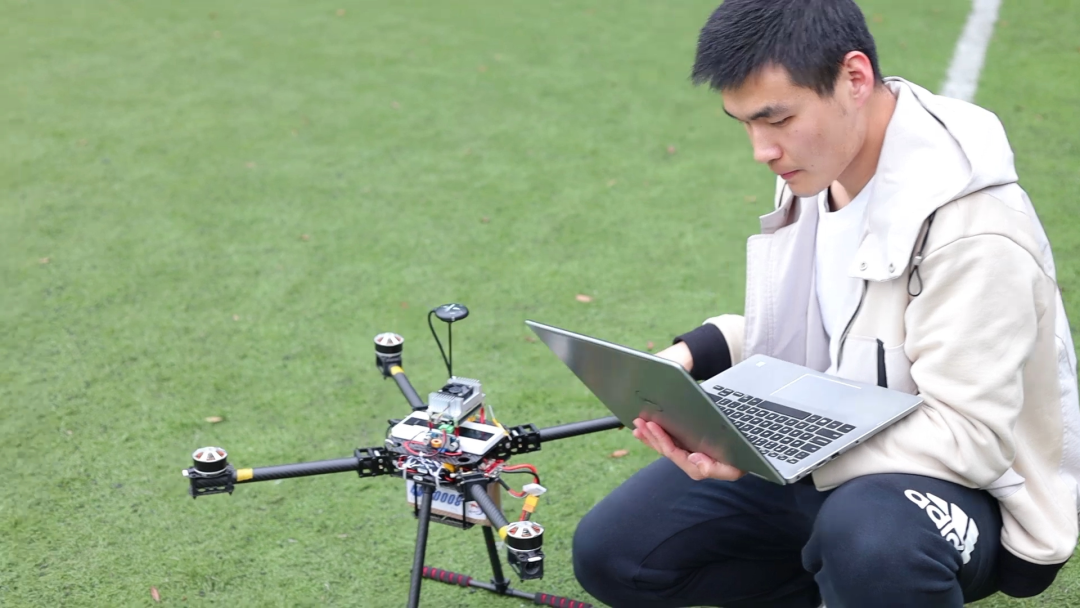 除了参加比赛,团队还致力于让研究成果真正落地,惠及民生。农业对劳动力需求大,却面临着收益低的问题,因此,尽管智慧植保无人机技术已经比较成熟,市场上也有很多类型的植保无人机,但因为价格昂贵,还是很难推广。针对这个问题,团队设计了本文开头提到的那款基于机器视觉的低成本智慧植保无人机系统。无人机飞控是稳定无人机飞行姿态,并能控制无人机自主或半自主飞行的控制系统,是无人机完成起飞、空中飞行、执行任务和返场回收等整个飞行过程的核心系统,可以看作无人机的“大脑”,是无人机最贵的部分之一。团队成员、航空航天学院电子信息专业2021级研究生唐帆告诉我们,目前市场上一套成熟的飞控系统售价大概在200元左右,而他们根据具体任务需求定制芯片,可以把每块控制芯片的成本减少到20~30元。比如侦察无人机需要处理数据,就定制算力高的芯片;反之,它不需要载重,就定制结构强度较低的机架。通过这样定制化的开发,既减少了冗余,降低了成本,又提高了无人机的稳定性。![4.png]()
