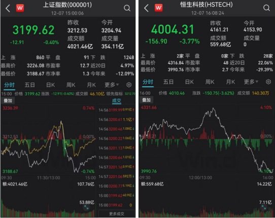 今日午后一开盘,A股、港股各大指数急速拉升,A股三大指数翻红,沪指一度涨逾0.4%,港股恒生科技指数一度涨超3.4%。但从13:30开始,各大指数又出现跳水,沪指一度跌逾0.7%,恒生科技指数从涨近4%跳水至跌逾4%。