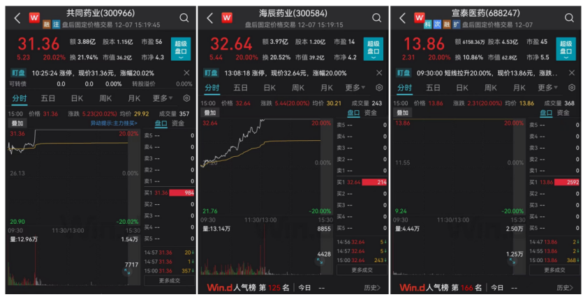 在掀起涨停潮的医药板块中,今日表现最为突出的细分概念板块,是熊去氧胆酸概念股,共同药业、海辰药业、宣泰医药均收获“20CM”涨停。