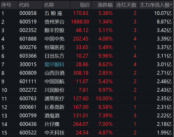 今日与主力资金偏好一致的北向资金,净买入贵州茅台和五粮液9.44亿元和3.26亿元,位居第一位和第三位。