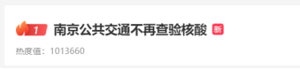 “南京公共交通不再查验核算”这一消息很快冲上今日微博热搜第一。