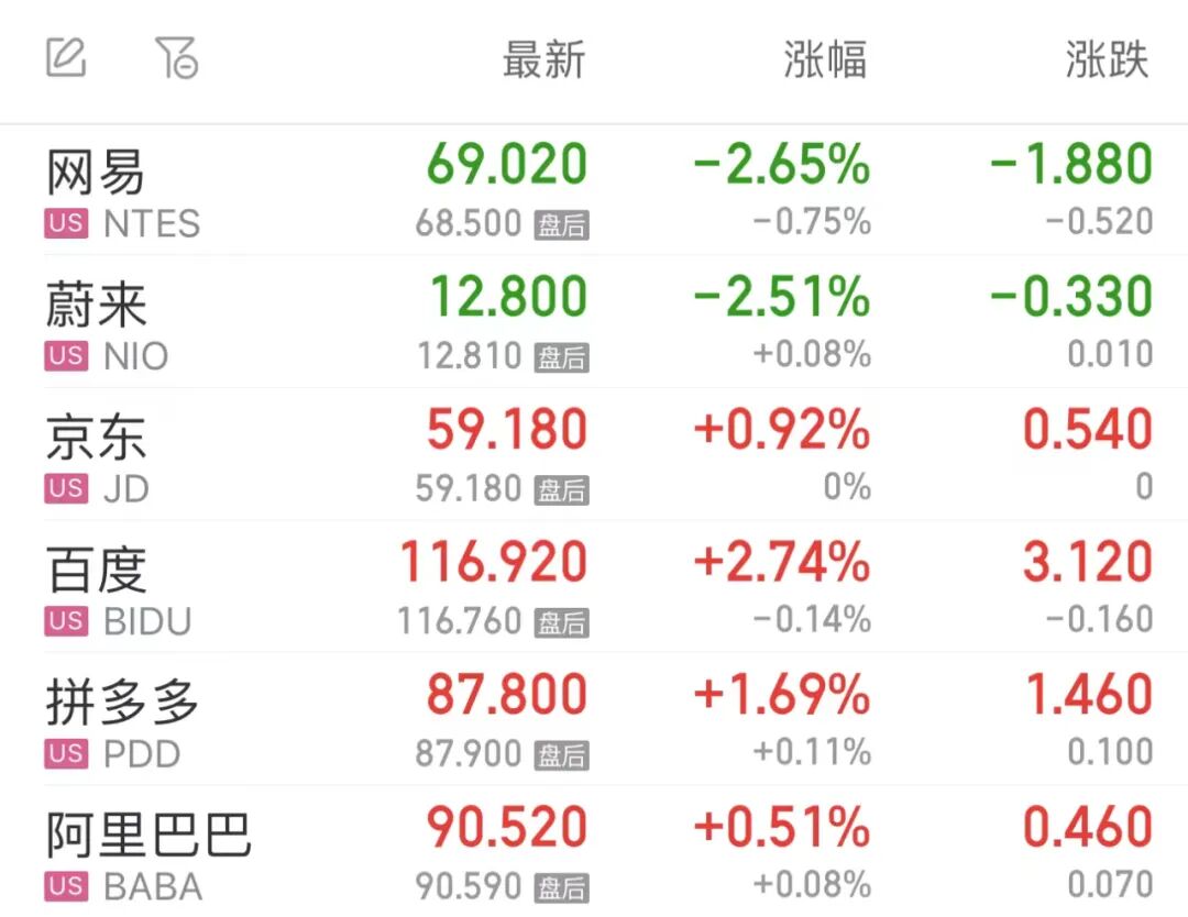 热门中概股涨跌不一