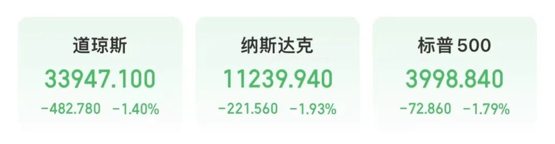 美股三大指数大幅收跌