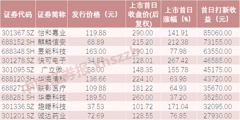 首日最赚钱新股:1签赚到8万5