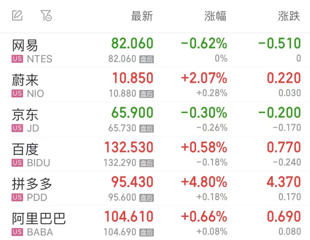 热门中概股多数上涨