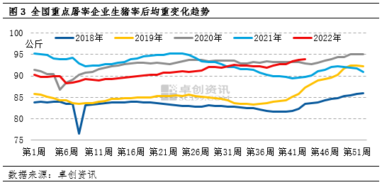 随着二次育肥猪源出栏,屠宰企业宰后均重继续增加,而且增速加快。卓创资讯监测数据显示,10月下旬至11月4日,全国重点屠宰企业生猪宰后均重平均每周增幅0.41%,与1-9月平均每周0.05%的增幅相比扩大0.36个百分点。随着二次育肥猪源增量出栏,宰后均重增幅或继续扩大,明显增加后市猪肉供应。