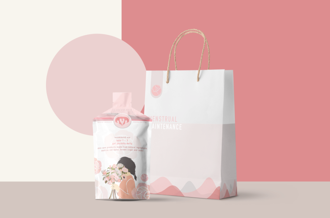 作品简介:关注女性健康问题,针对女性经期出行的饮品设计,大致分为现做饮品和袋装口服液两种形式,针对用户长期不居家的女性人群:初中/高中住校生 大学生 上班族 … 旨在使用一种温和的产品呵护女性健康,时尚便捷。消费者对于产品有更多的个性化诉求,他们热衷通过消费品体现生活态度,喜爱具有社交属性的产品。