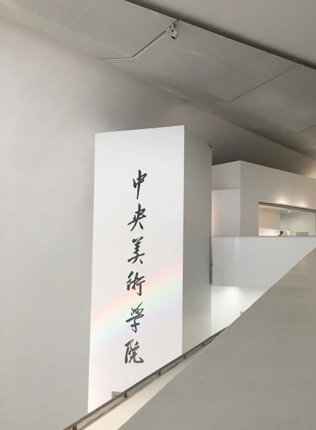 17年我在美术馆当毕设导览志愿者时拍的照片,美术馆大厅刻印的“中央美术学院”几个大字上有一道彩虹。