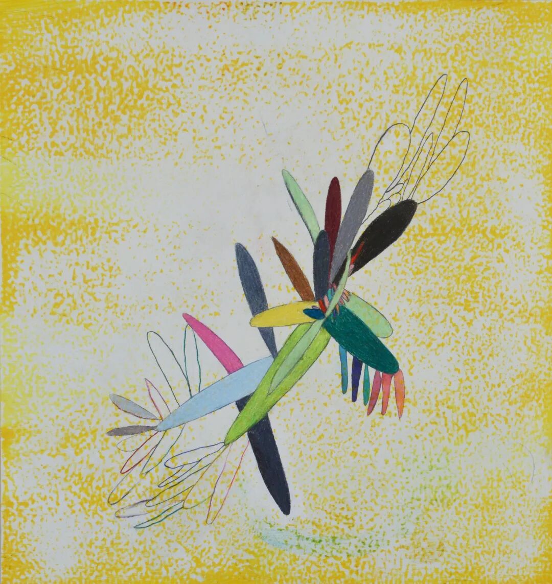 Swimming, 2020, colored pencil, oil on panel, 20” X 19”