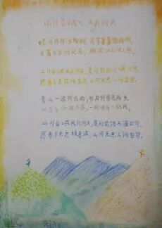 我给孩子们播放了程璧唱的“山川异域,风月同天”,并抄写了歌词: