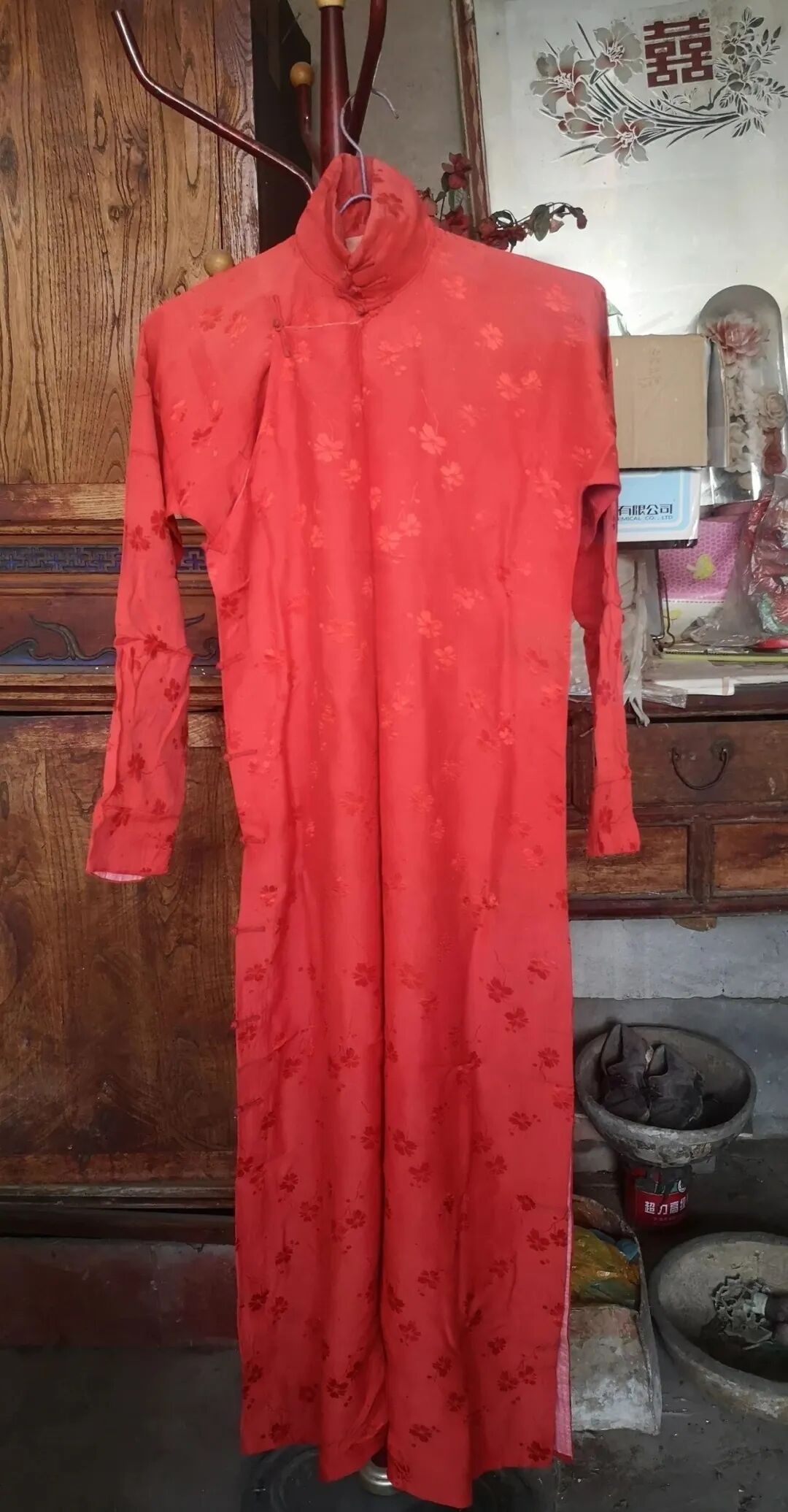 奶奶1922年的8月8日出生在一个有着30多户人家的小山沟村子里。奶奶娘家的条件还是不错的,她没有缠过脚,小时候还念了几年书,也识得一些字。21岁的时候嫁到了我们村,穿的是手工缝制的旗袍。这件大红的绸袍,是奶奶的宝贝,她珍藏了一辈子,最后是陪着她一起走了。我特地拍了一张照片留念: