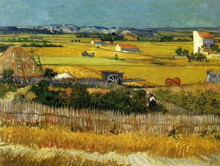 温森特·梵高有三幅画,特别打动我的心。一幅是画于阿尔的《收获景象》。大片大片金黄的色彩,仿佛阳光下的田野吸收了所有的温暖,每一块土地都要呼吸,尽情释放来自土地的力量。