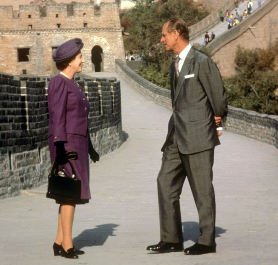 伊丽莎白女王和菲利普亲王在长城 图源网络