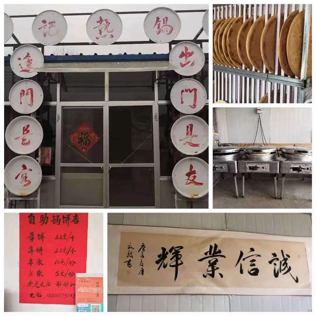 可店家却不知所踪。等了一会儿,进来一位买锅饼的小伙子,只见他对着墙上的二维码打上款后,麻溜儿地提着一兜锅饼就走。我急忙喊住了他,还没等我张口呢,他指了指墙上的价格表:“你是第一次来吧?喏,自助下单,店家这时候下地干活去了吧?”