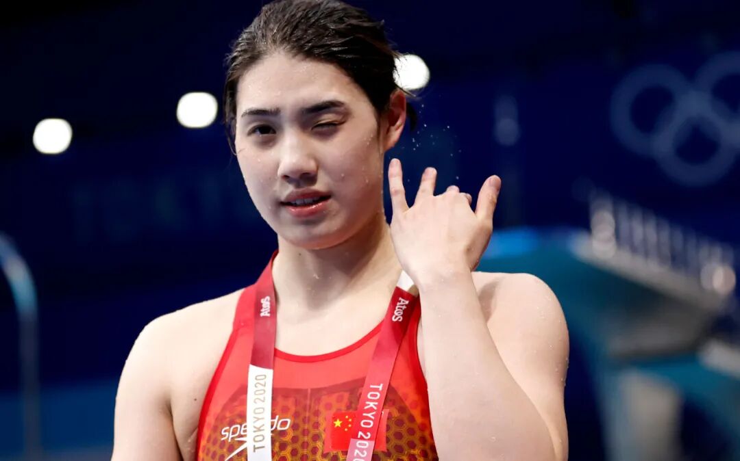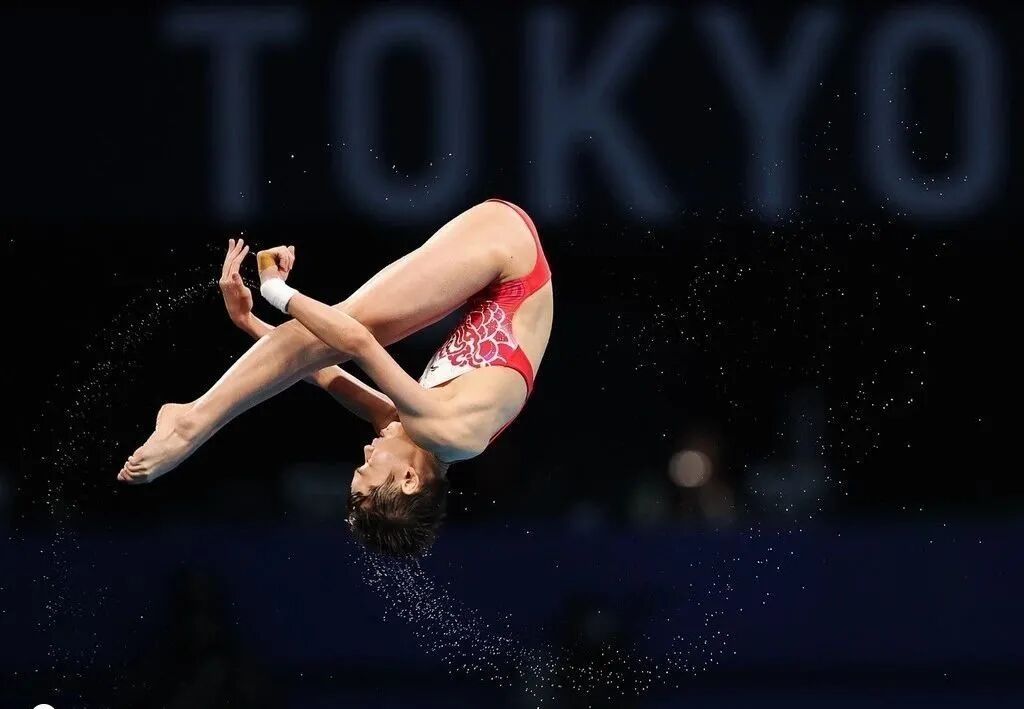 年仅14岁的全红婵,如同一朵红花飘落水面,不溅起一朵水花。