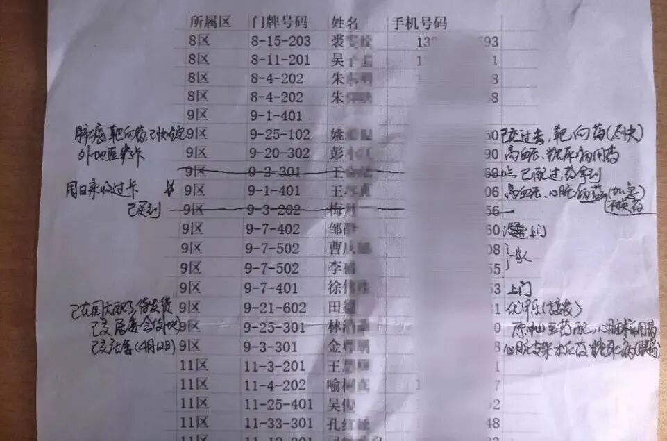我所在的药品组的志愿者组长是位中医,也居住在小区里。3月中旬小区刚封闭的时候,他就开始做核酸组的志愿者了,后来“承包”了药品组,一干就是一个月。他日常的工作就是登记用药,出门配药,有时要出去一整天,跑两三家医院,才能把药配齐。穿着厚厚的防护服,开着自己的车,他每天最开心的是带着一大包药回来。有时因为小组其他志愿者的粗心大意,也会被他时不时“教育”一下,露出医生的本色。业主捐赠的油卡,被他退回了。就在前天,他被自己的医院召回去,开始轮换前面的一波医生,到社区去做核酸检测了。这是我送药回来看到刚从医院配药回来的他还在为各位年长者和慢性病患者登记用药;晚上8点多了还没回家,晚饭也还没吃。
