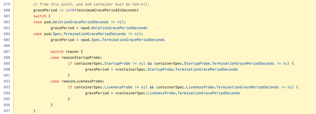 在该方法中会判断 Pod 是否已经优雅停止了,代码位于 https://github.com/kubernetes/kubernetes/blob/v1.22.8/pkg/kubelet/status/status_manager.go#L583-L652,如下所示: