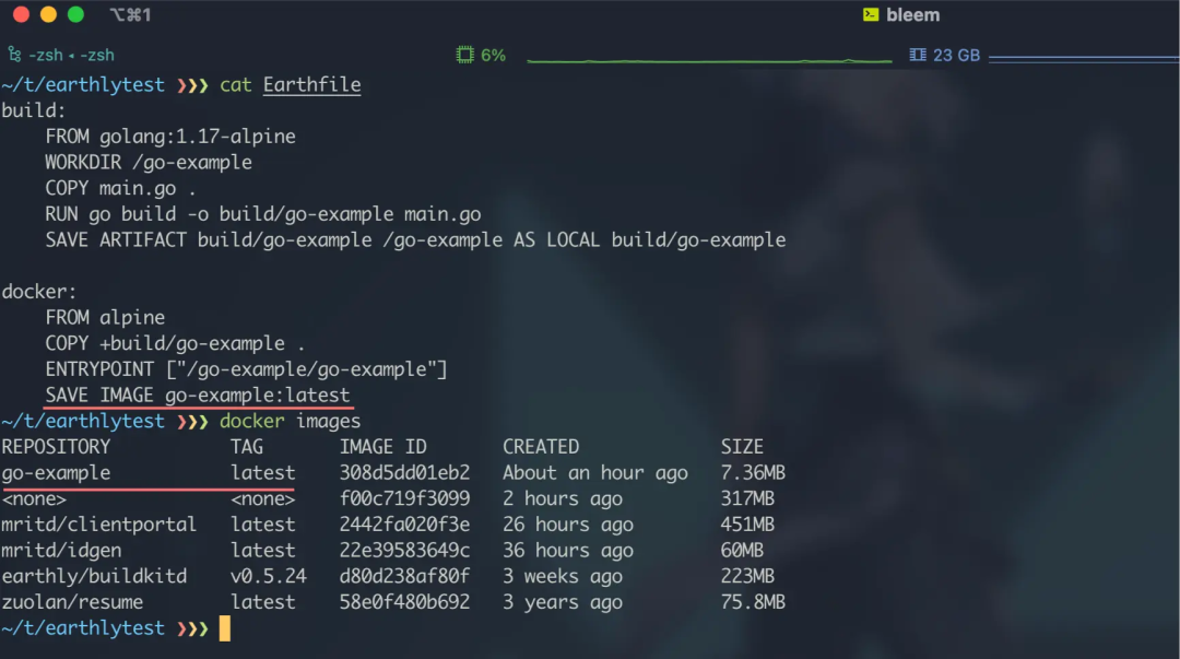 有了 Earthfile 以后我们就可以使用 Earthly 将其打包为镜像;