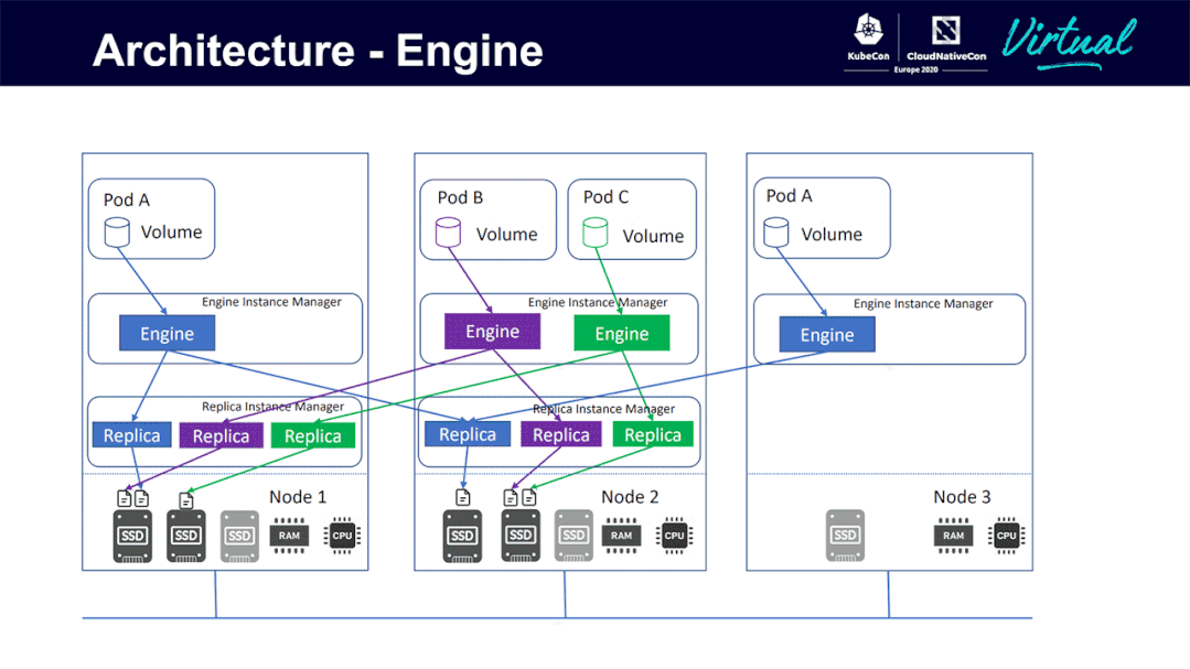 如果一个卷出现故障,则无法影响其他卷、引擎和副本。通过这样做,可以避免为整个集群提供高可用性引擎。相反,我们有专门用于每个卷的小型引擎和副本。