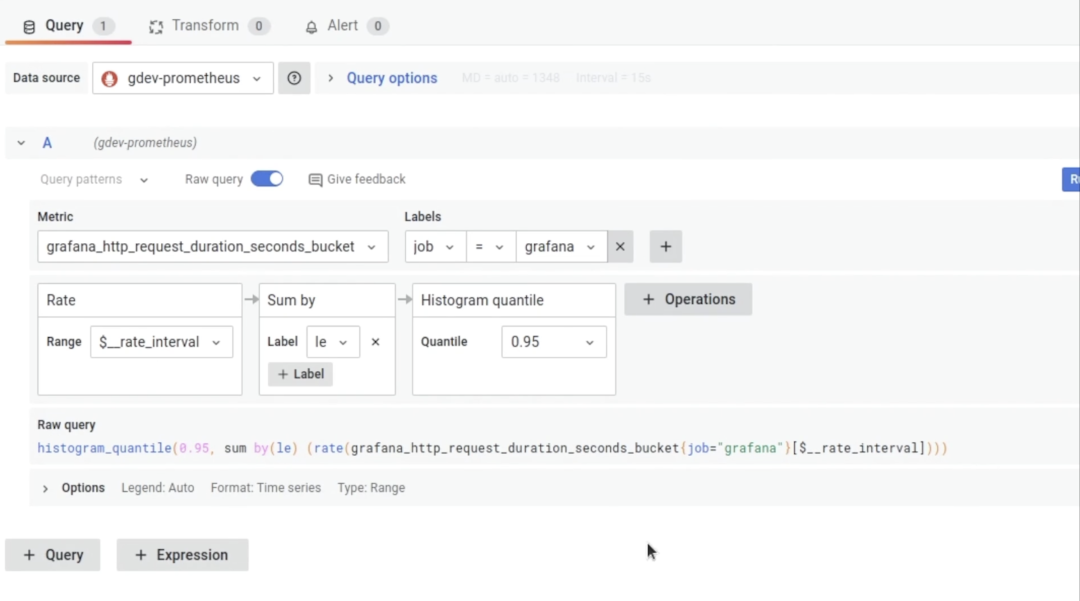 Prometheus 的新查询生成器正是为了解决这个问题而建立的。在 Grafana 9.0 中,你将在 Explore 中看到一个全新的可视化查询生成器界面,允许任何人编写、编辑和理解一个查询的作用。