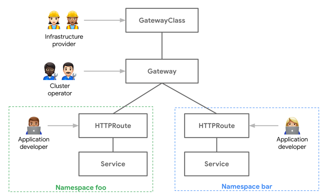 GatewayClass 由平台/基础设施提供商提供,例如 Istio 或 Google Cloud。