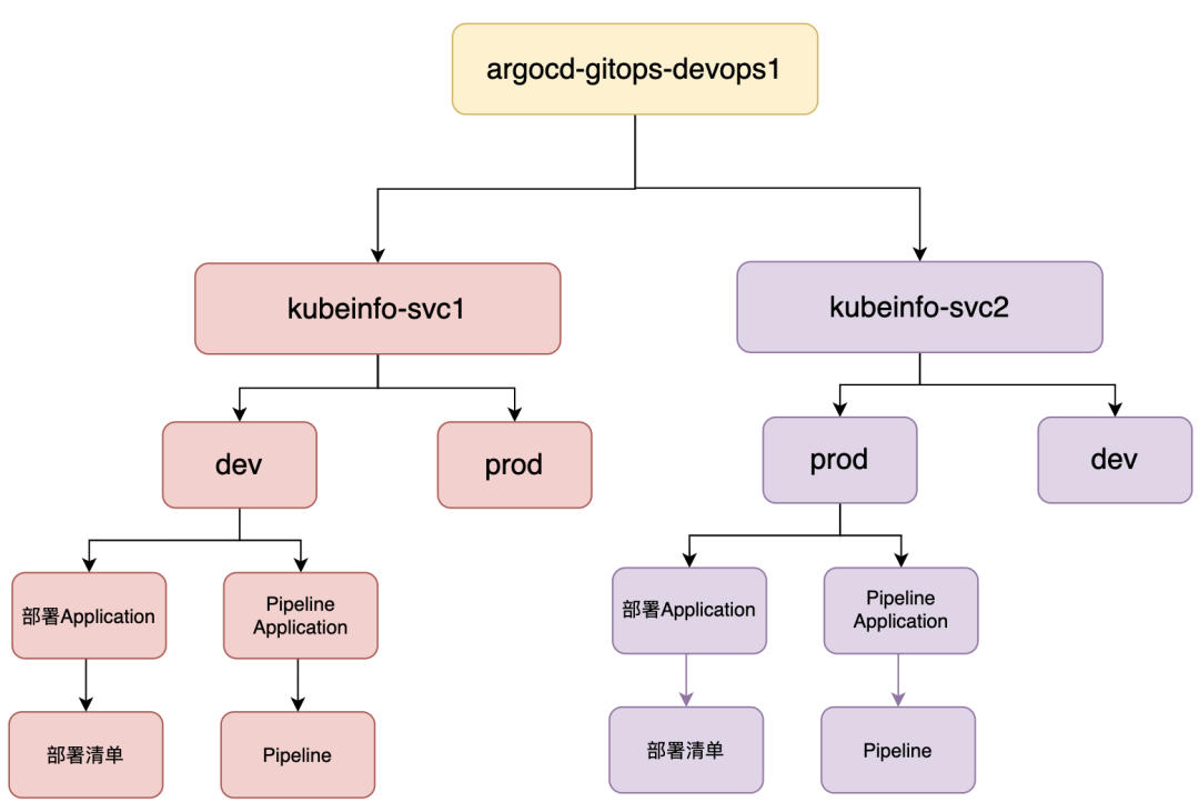 一个服务对应 2 个 Application,一个管理 pipeline CR,另一个管理 deployment 等部署清单。