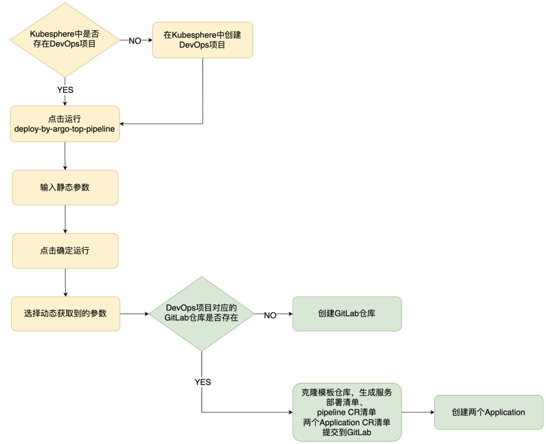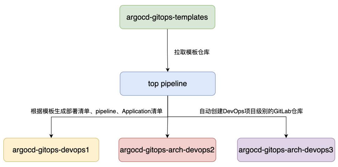 argocd-gitops-{devops 项目名});argocd-gitops-templates项目存储了生成服务流水线和部署清单、argocd Application 的模板。