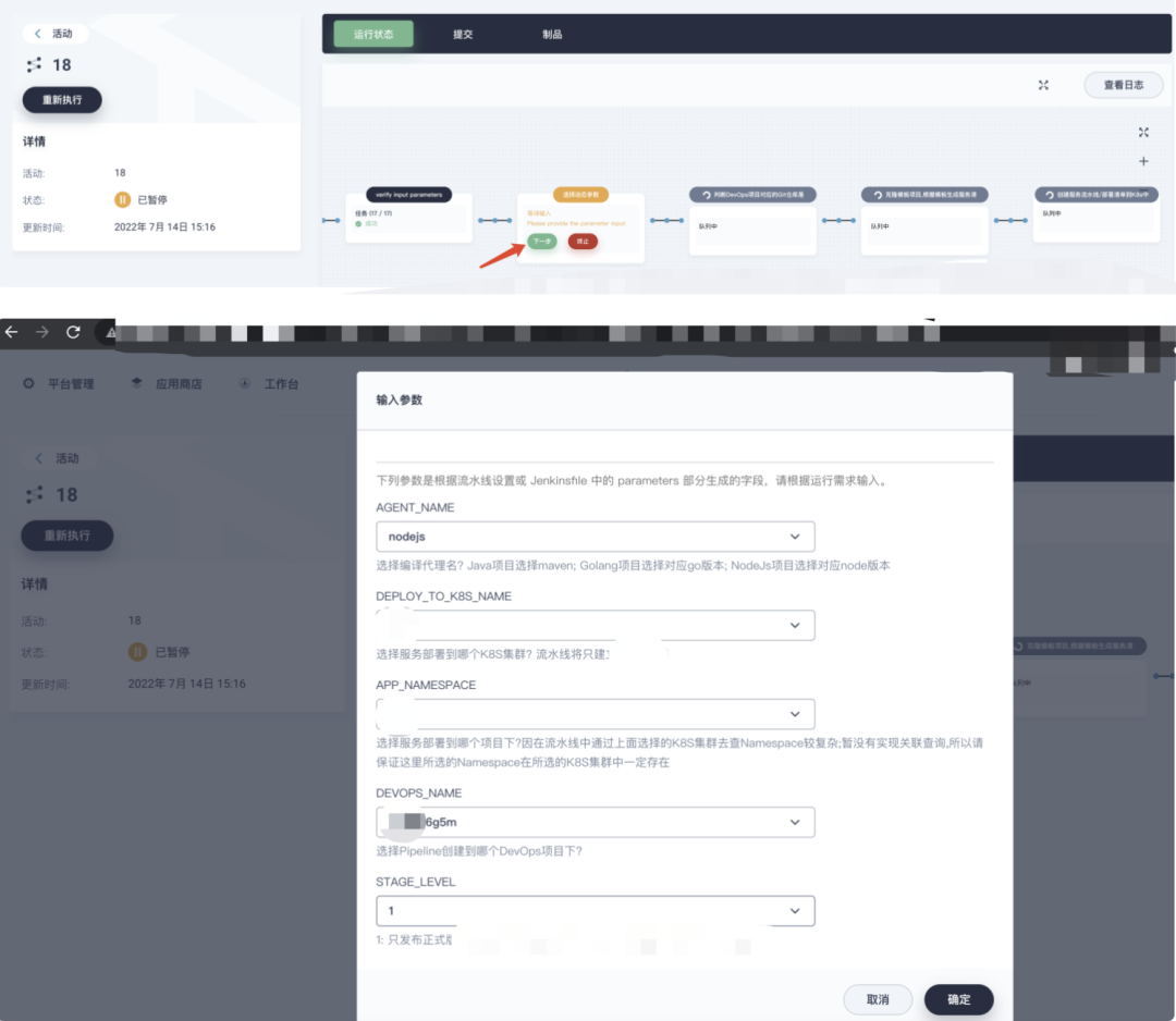审核阶段,如果点击“终止”,将回滚上一个阶段的镜像版本。