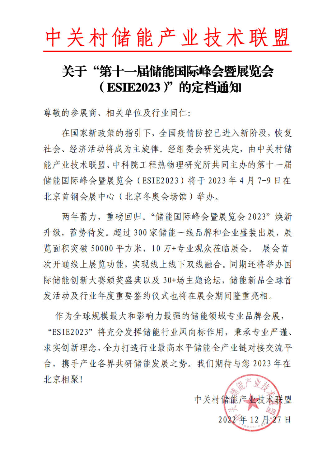 关于“第十一届储能国际峰会暨展览会(ESIE2023)”的定档通知