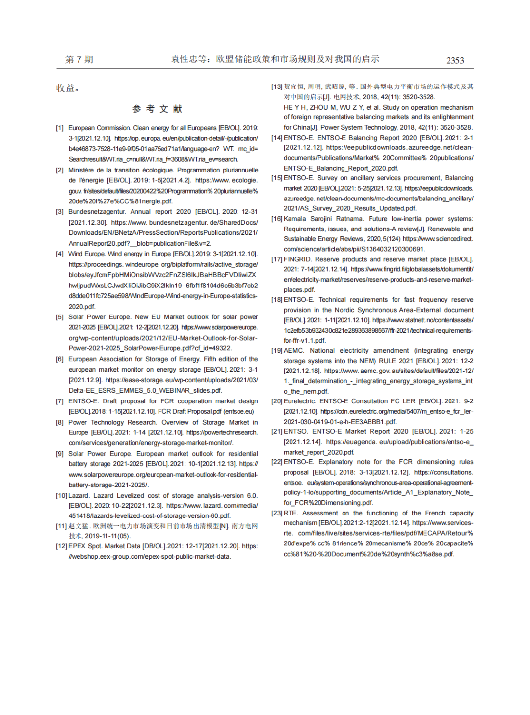 作为构建新型电力系统的关键技术支撑,储能的发展离不开政策环境的支持。欧盟作为电力市场化改革的先行者,在建立统一、充分竞争的电力市场过程中积累了丰富的经验,目前已经形成了成熟的电力现货市场交易体系与电力平衡机制,为储能构建商业模式提供了有利条件。同时欧盟也不断在顶层政策和电力市场规则上做出修改,旨在推动储能的规模化发展,为储能在更大范围内参与电力市场创造有利条件,值得我国借鉴。