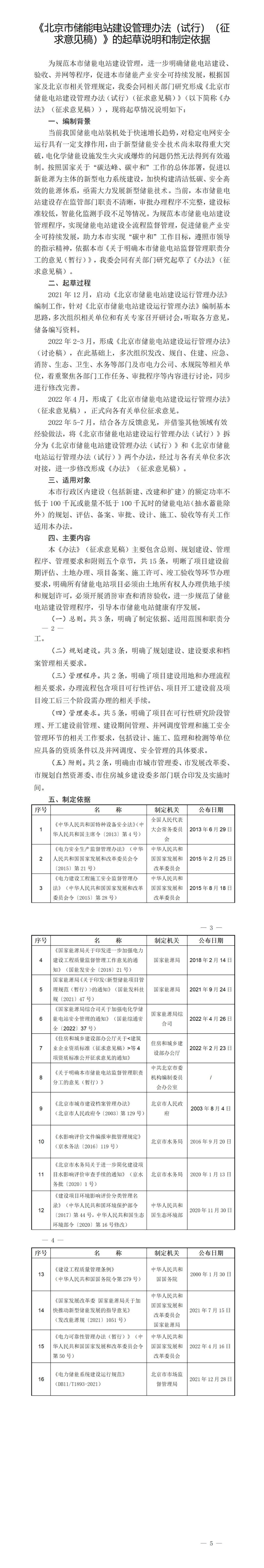 附件2:关于《北京市储能电站建设管理办法(试行)(征求意见稿)》起草说明和制定依据