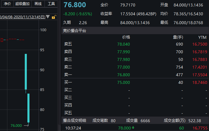 总负债23亿,唯一一期公开市场债券只有3个亿,砸到80元,55%ytm。