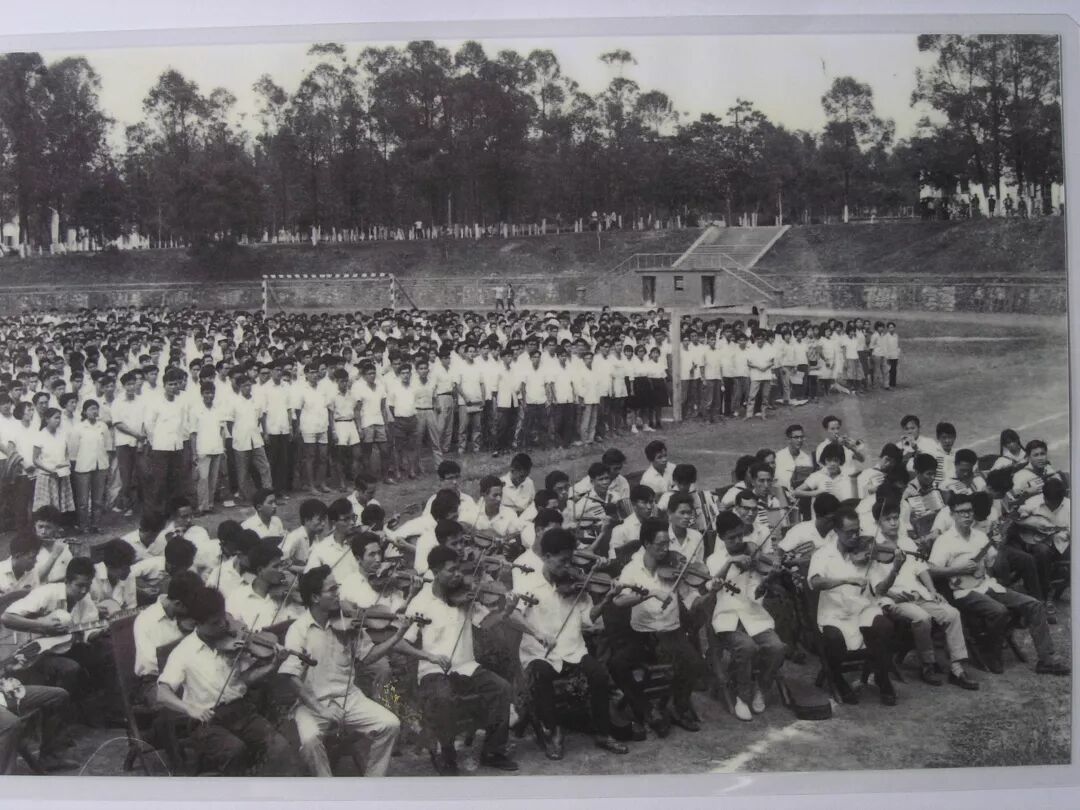 60年代,由暨大全校各系组成的阵容强大的乐队,在庆祝国庆大会上演奏乐曲