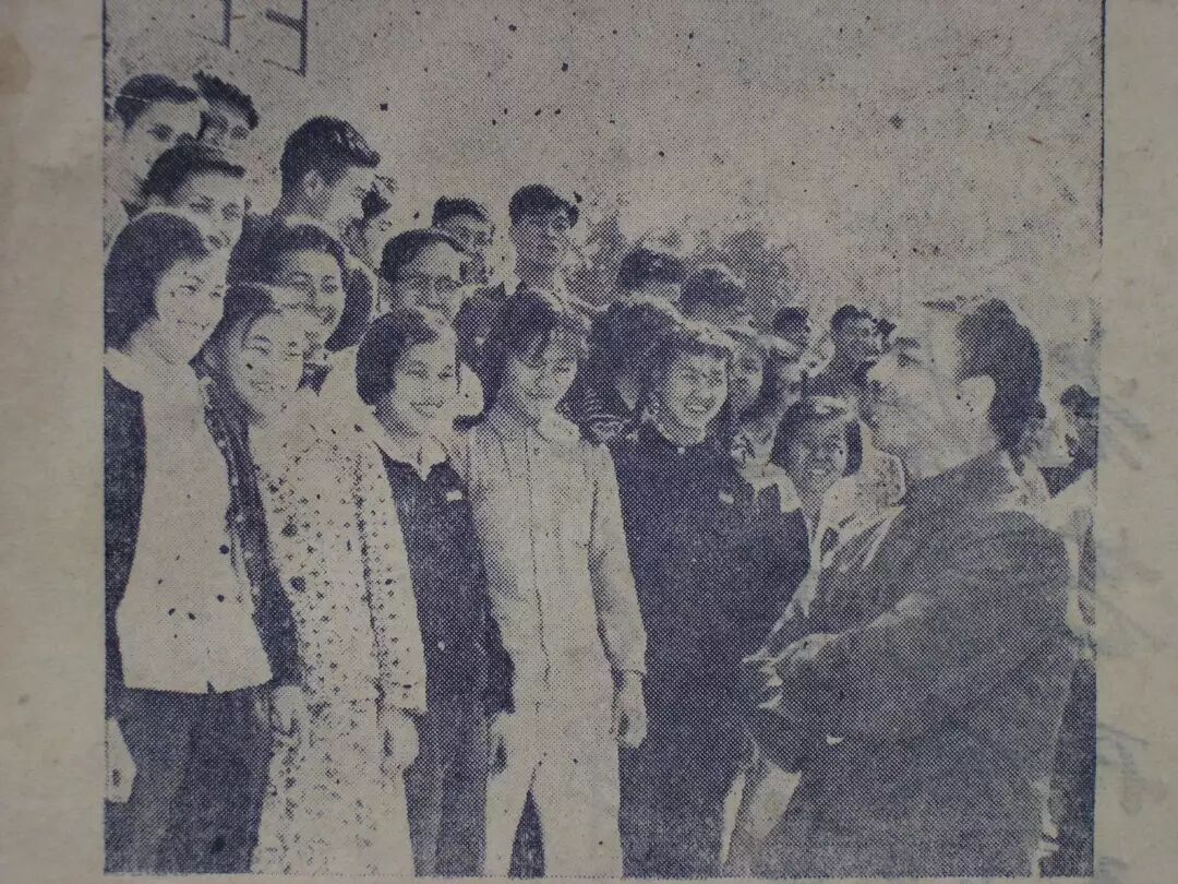 1958年暨南大学在广州重建,图为陶铸校长和优秀侨生、港澳生合影