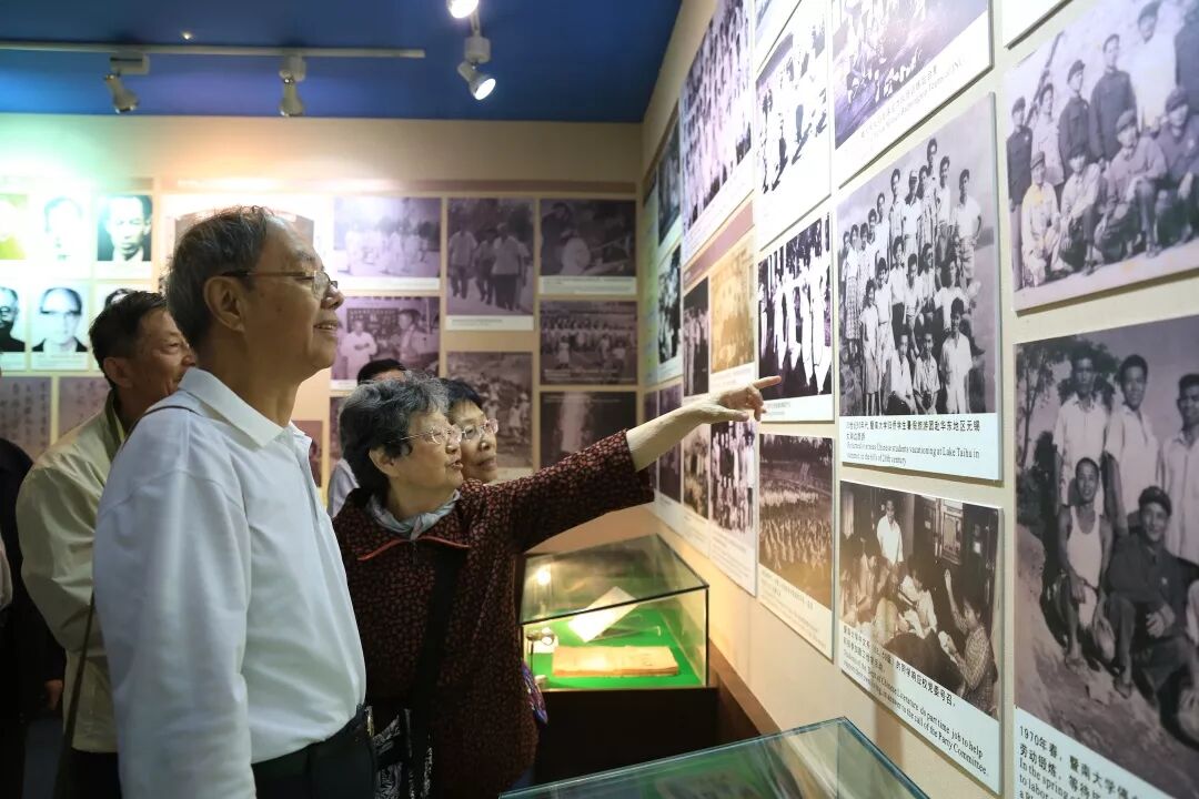 老校友指认校史馆照片中的自己(见下图)