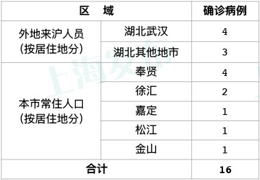 2020年1月29日0—12时,上海市新增新型冠状病毒感染的肺炎确诊病例16例,其中,1例危重病例。新增确诊病例中,外地来沪人员7例,本市常住人口9例。具体情况如下:截至1月29日12时,上海市累计发现确诊病例96例,其中,男性50例,女性46例;年龄最大88岁,最小7岁;71例有湖北居住或旅行史,1例有广东旅行史并曾食用野生动物,22例有相关确诊病例接触史,2例无湖北接触史;外地来沪人员47例,本市常住人员49例。具体情况如下:![]()