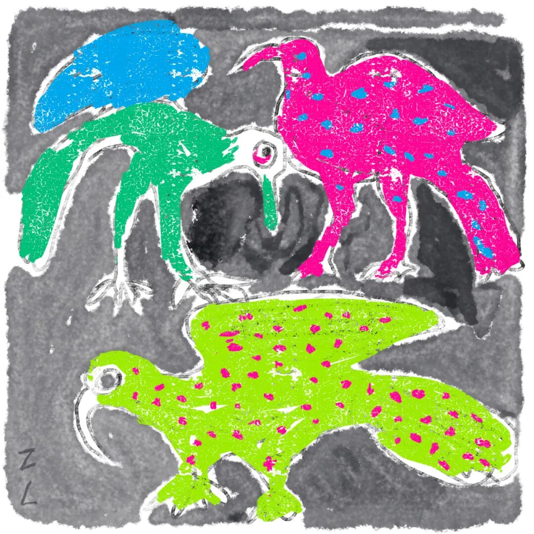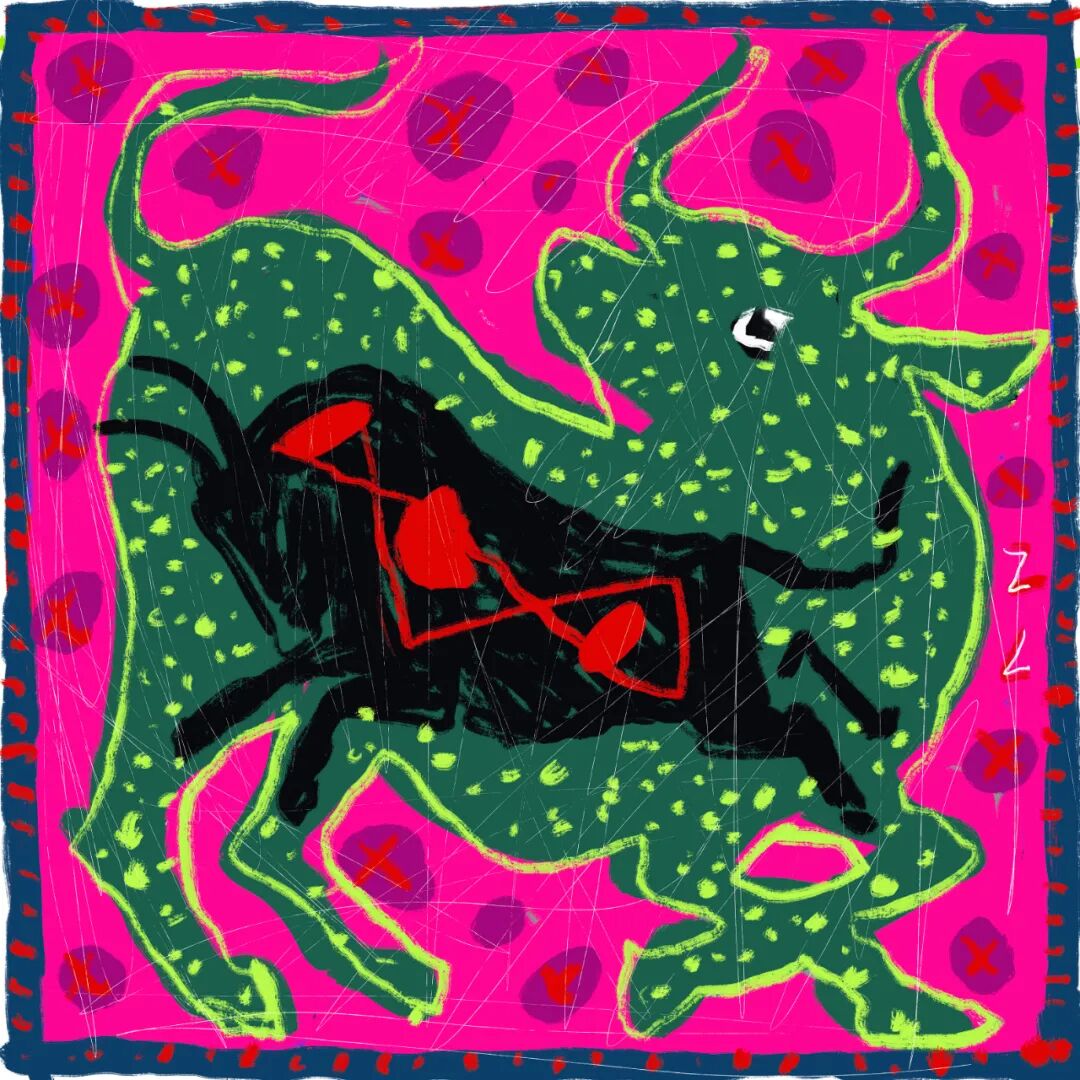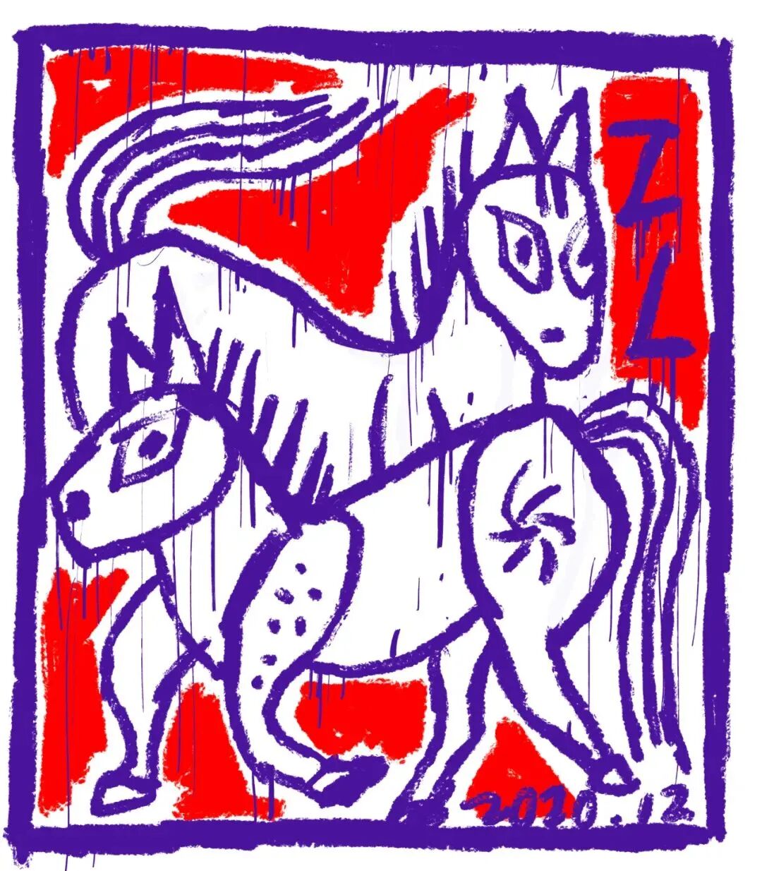 周雷天性温善,特别能体察这种动物的滋味。早年,他就以素描称著于国美几代学子。疫情中,他困守宅舍,心中却念着动物的自由与辽阔。这种念想积成一种痴,专情于iPhone、 iPad之类的数字工具,手抹指挑,驱动各类滤镜赋形的模式,闯入动物生肖的世界。并翔天潜地,沉思积讯,与动物为邻,与生肖合居,一发而不可收。现在,这个丰繁的“动物世界”,五彩缤纷,出神入化,向我们开放。