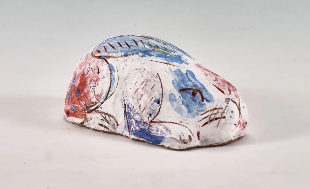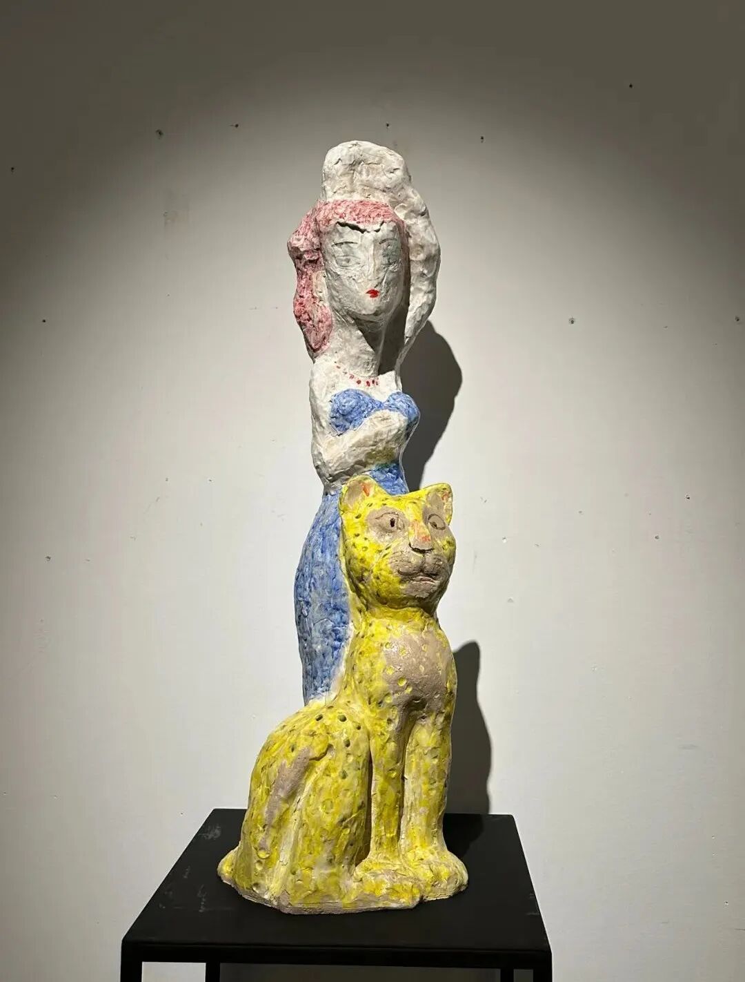 除去数字绘画,周雷还做了不少小塑。这些小塑全然民间的风味,或陶土封泥,或木雕彩塑,莘莘然蓄蕴妙拙粗简的谐趣。中国的《诗经》中最有趣和最上口的是《风》,“风”中的草木俱在人心。周雷的艺术正有这种“风”的生姿活态。他常在外形的木讷中包裹内在的坚毅,仿佛用一种不经意的痴梦,来隐藏生命的意涵,既漫不经心,却又一往情深。此又是稚巧的一番高境。