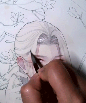▲用白墨水跟着头发走,轻轻勾出几根凌乱的发线,不要贪多哦~