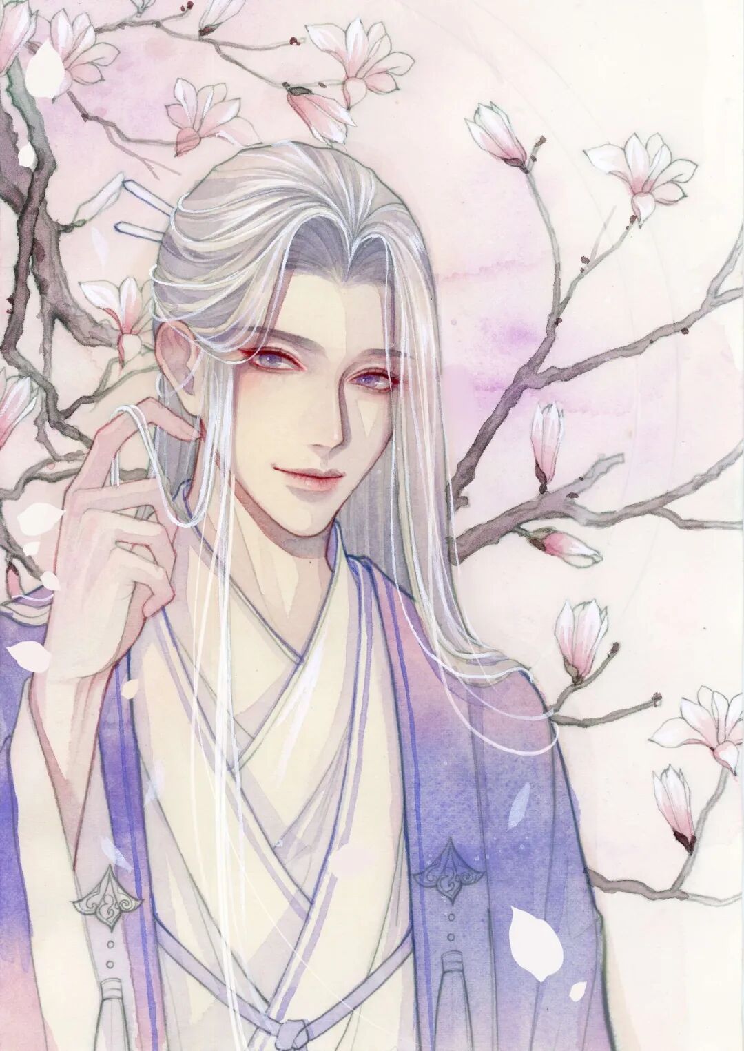 调整下小细节后,一位白发飘飘的神仙小哥哥就画好啦~