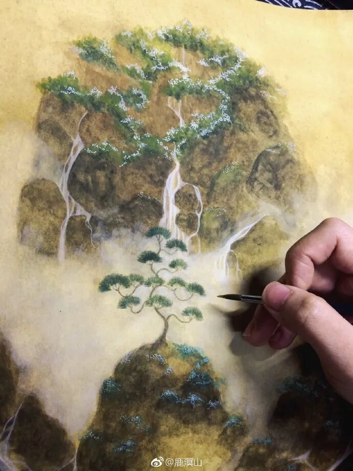 她借鉴古画学习山水走形,继承了古画中的各种图案元素,寓意深远