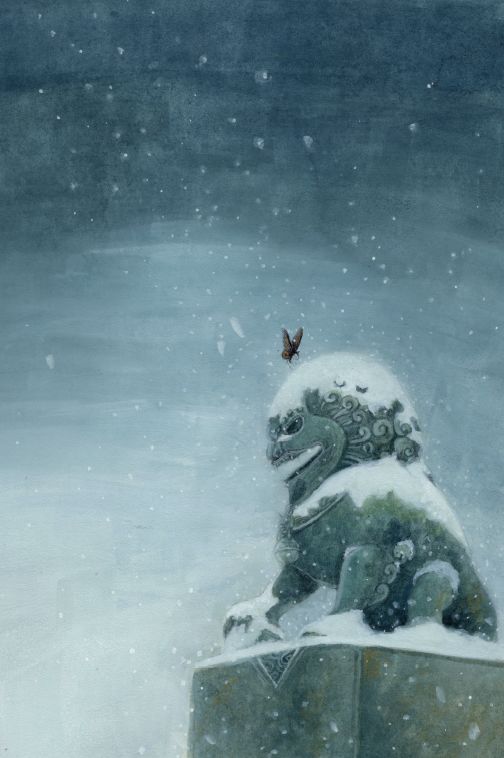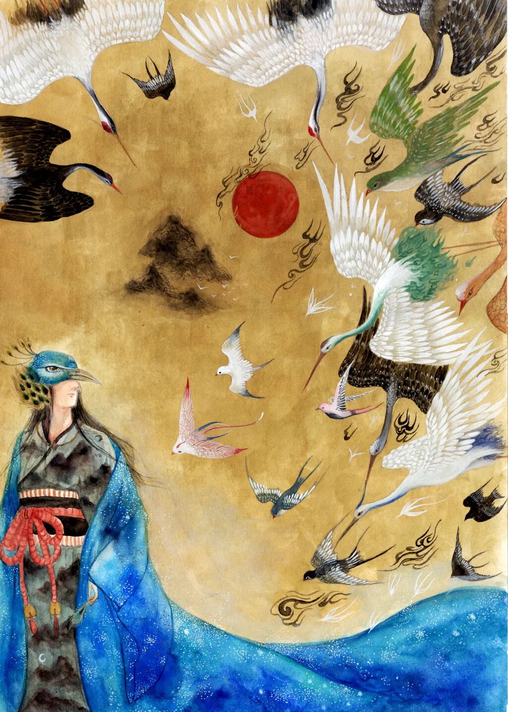 鹿鹿的画总是有着浓浓的中国风,她用一种来自日本的颜料颜彩,结合了中国画的大气悠扬和日本的氛围渲染,充满了古韵朴拙的质感,画面物象厚重而又有体积感。