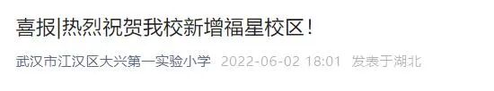 小颀获悉,江汉区大兴第一实验小学通过官微正式官宣该校新增福星校区。