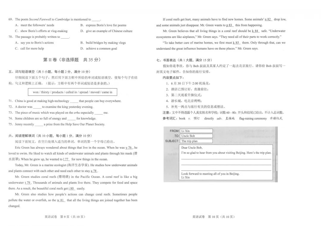 各科试卷、参考答案来了!具体如下: